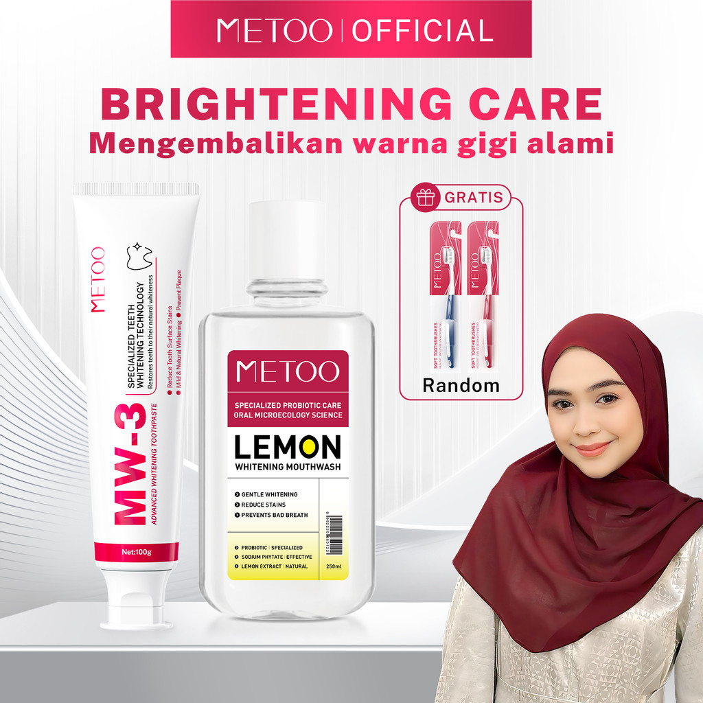 Brightening Care - Metoo Mw-3 Advanced Whitening Toothpaste 100Gr1 + Lemon Mouthwash 250Ml1 + Soft Tooth Brush2 -Bp