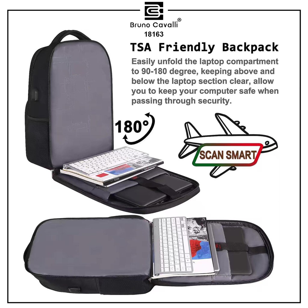 Bruno Cavalli Forte s 18163 Tas Ransel Laptop TSA Friendly 180 Derajat Backpack Pria Tas Ransel Pria