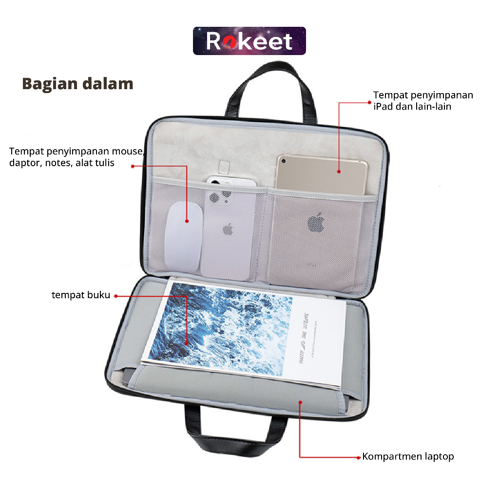 Rokeet Cute Laptop Sleve Tas Laptop 15.6-16 inch Motif Unik Stylish Multifungsi Anti Guncangan + Bisa Pasang di Koper