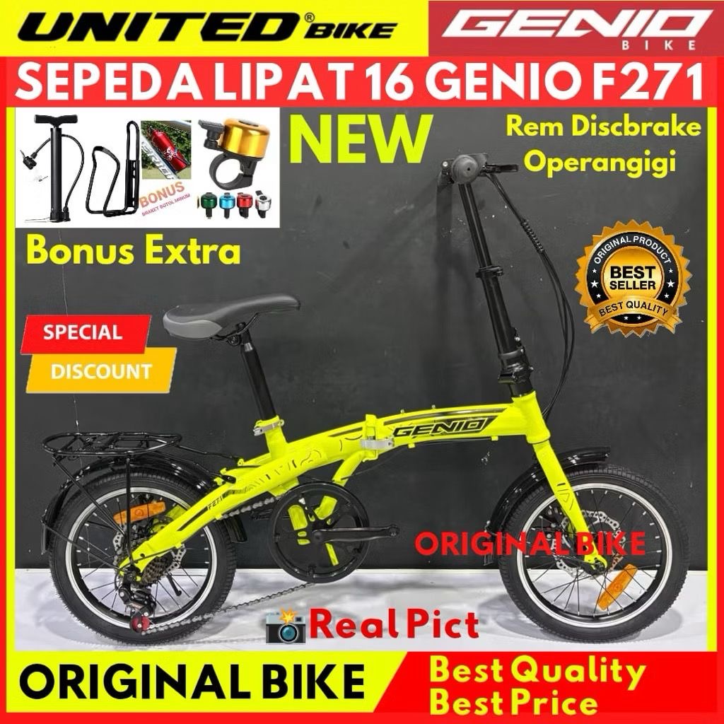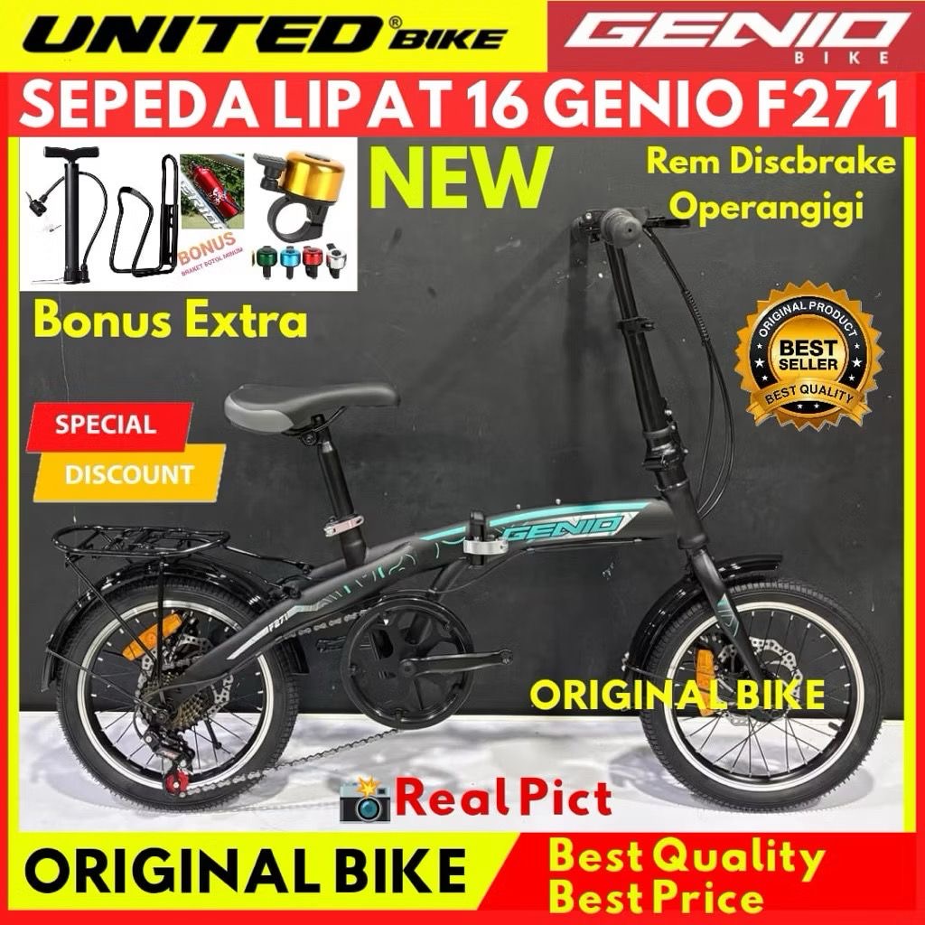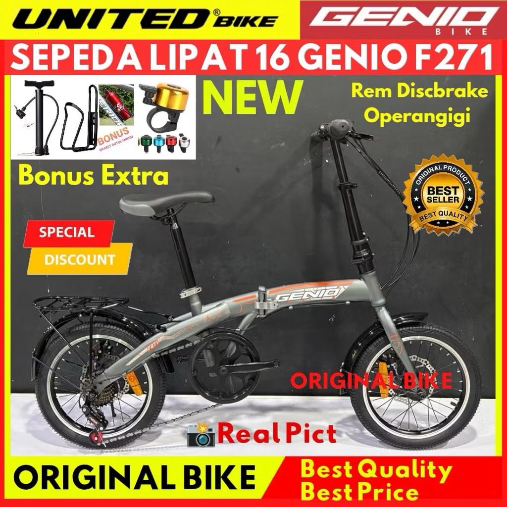 Sepeda Lipat 16 Inch Genio F271 Rem Discbrake Operangigi Terbaru