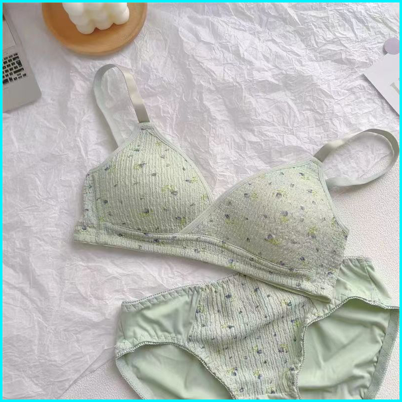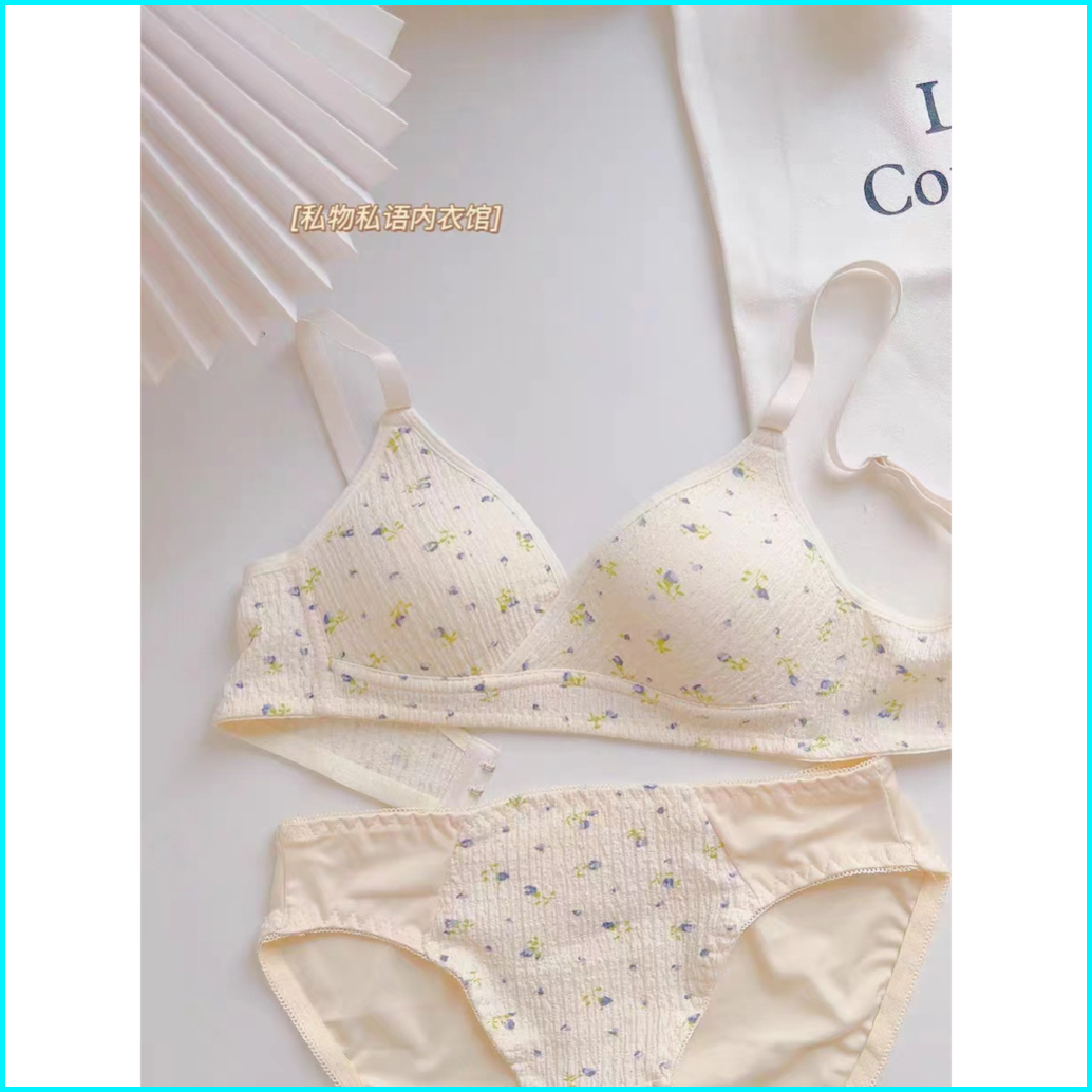 Fairygirl.id Set Bra Celana Dalam Motif Bunga Push Up Style Senam Zumba Yoga Pakaian Dalam Wanita