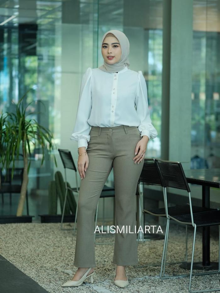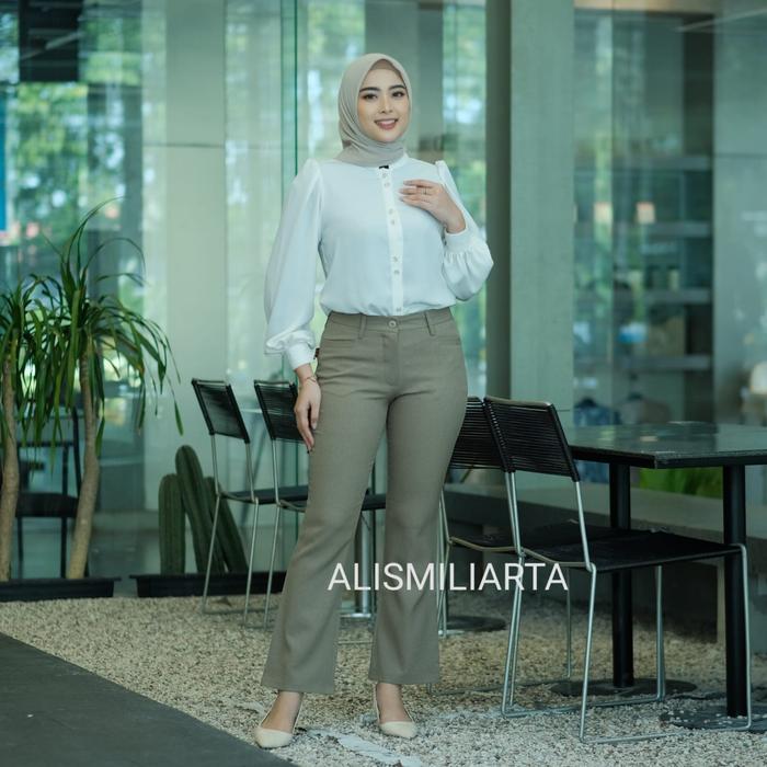Cutbray Fazila Celana Formal Wanita Kain Melar Medium Stretch Nyaman Kancing Tebal Variasi Simple Cut Bray - Hitam, S