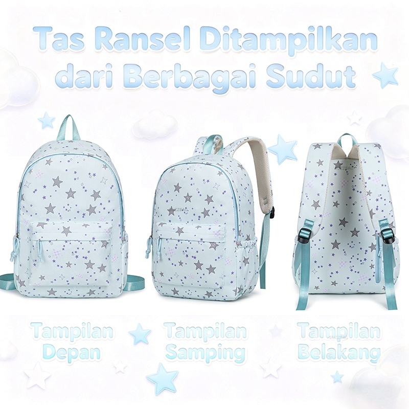 BuzzBag - Tas Ransel Wanita Korean Style Motif Bintang Viral, Muat Laptop 15 Inch, Tas Sekolah Mahasiswa Kapasitas Besar, Tas Murid SMP SMA