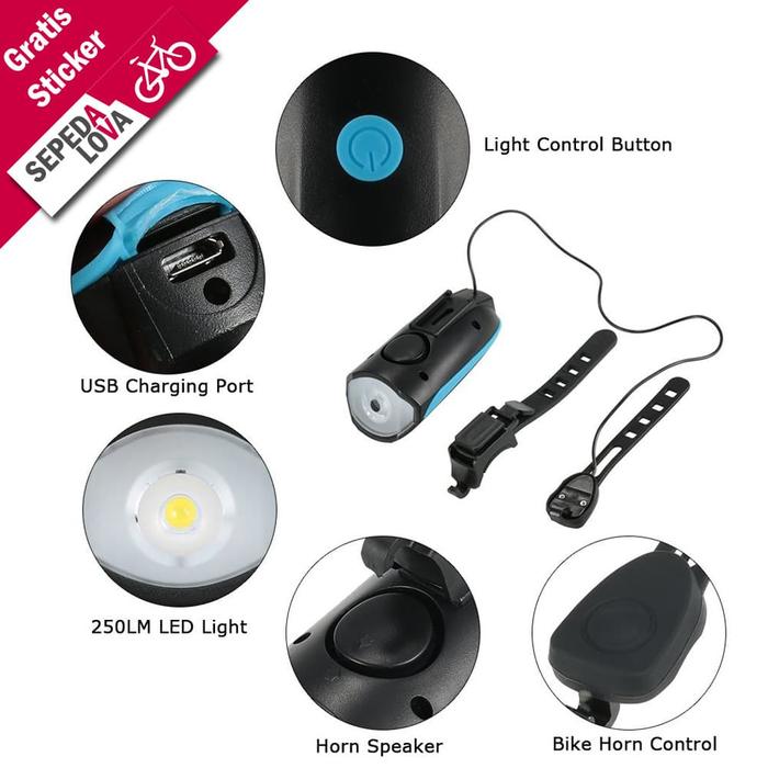 Lampu Depan Sepeda Led Dan Bel Klakson Elektrik Usb Rechargeable