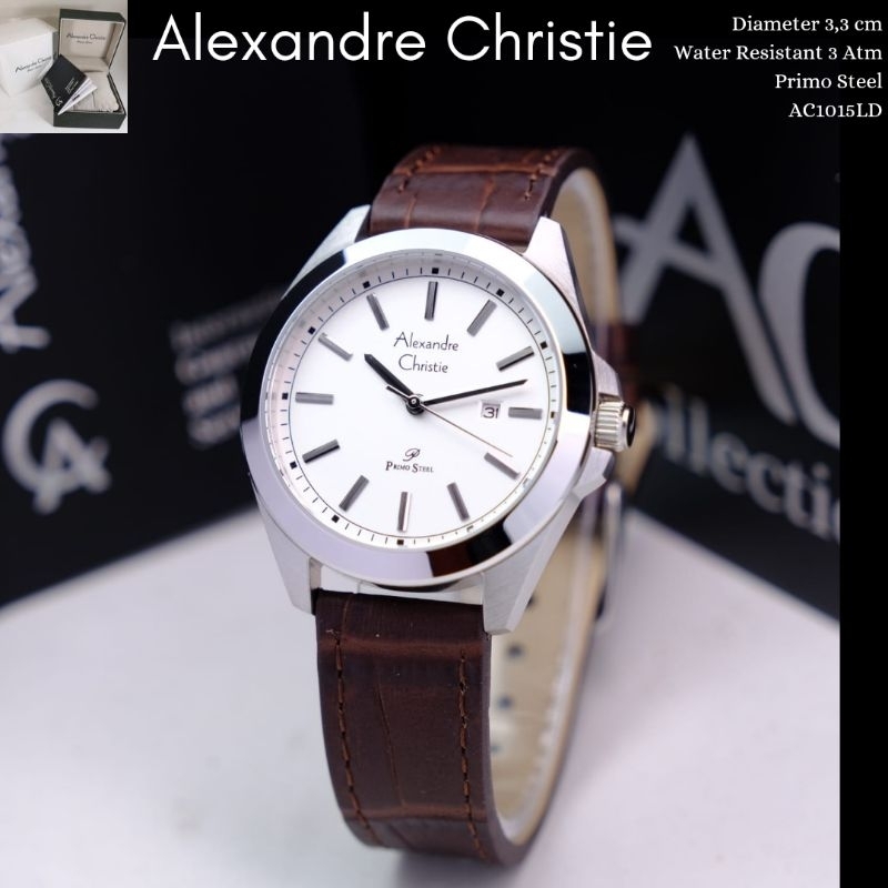 Alexandre Christie ORIGINAL jam tangan pria couple AC1015 silver brown tali kulit Alexander 100 PERSEN ori
