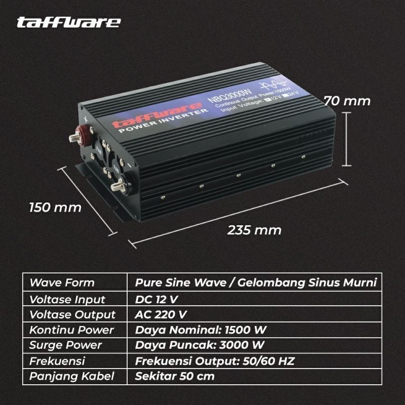 Taffware Inverter PSW 3000 watt / Pure Sine Wave Car Power Inverter DC 12V to AC 220V 3000W - SY3000