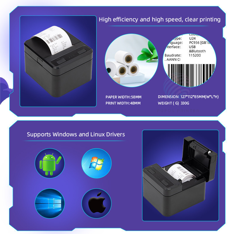 PRINTER THERMAL TOSERBA GAJAH KECIL 58MM POS58L - USB BLUETOOTH SUPPORT ANDROID IOS WINDOWS FREE 3ROLL PAPER