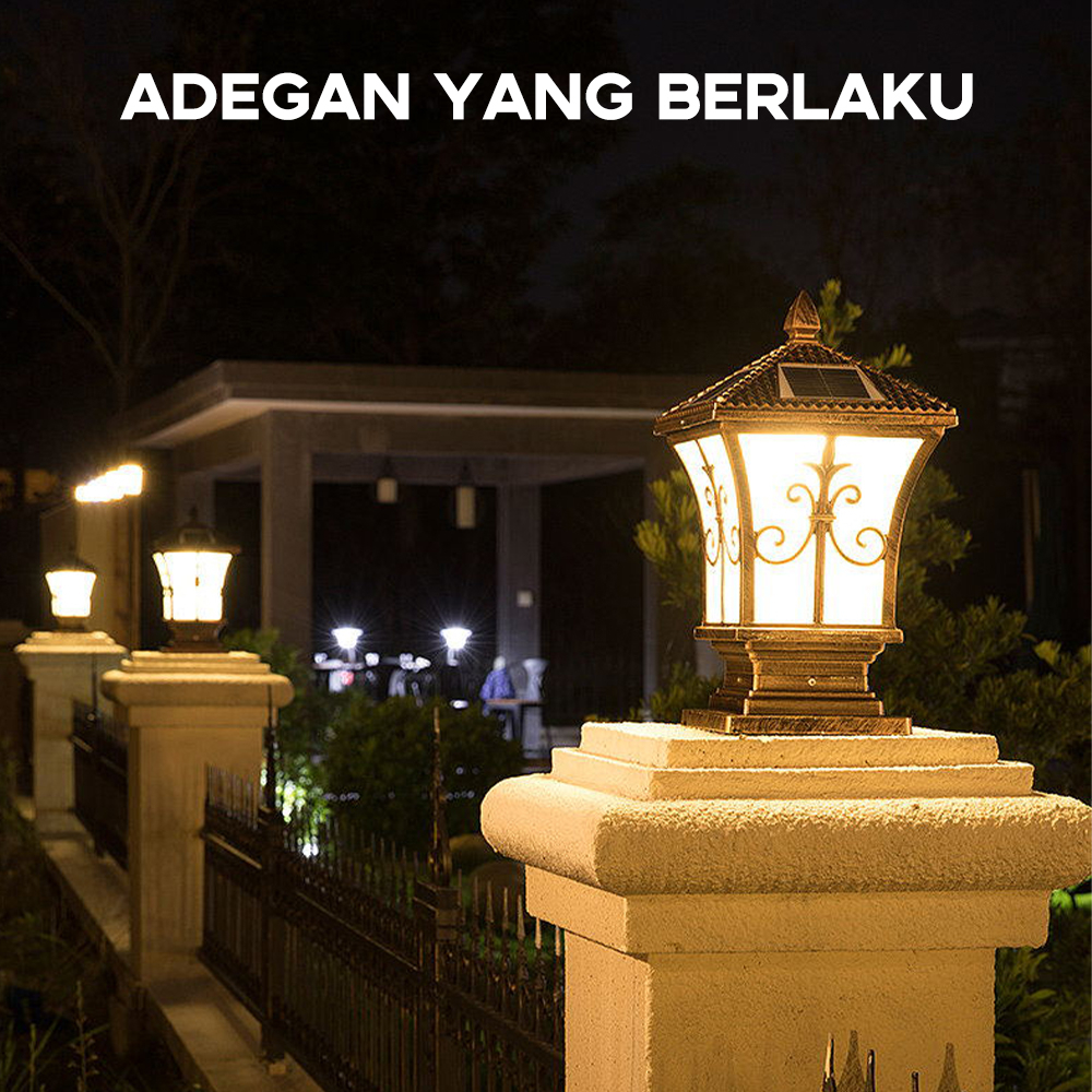 HAN RIVER 10W Lampu Taman Tenaga Matahari 3Warna Outdoor Lampu Pilar Multifungsi Lampu Pagar Tenaga Surya