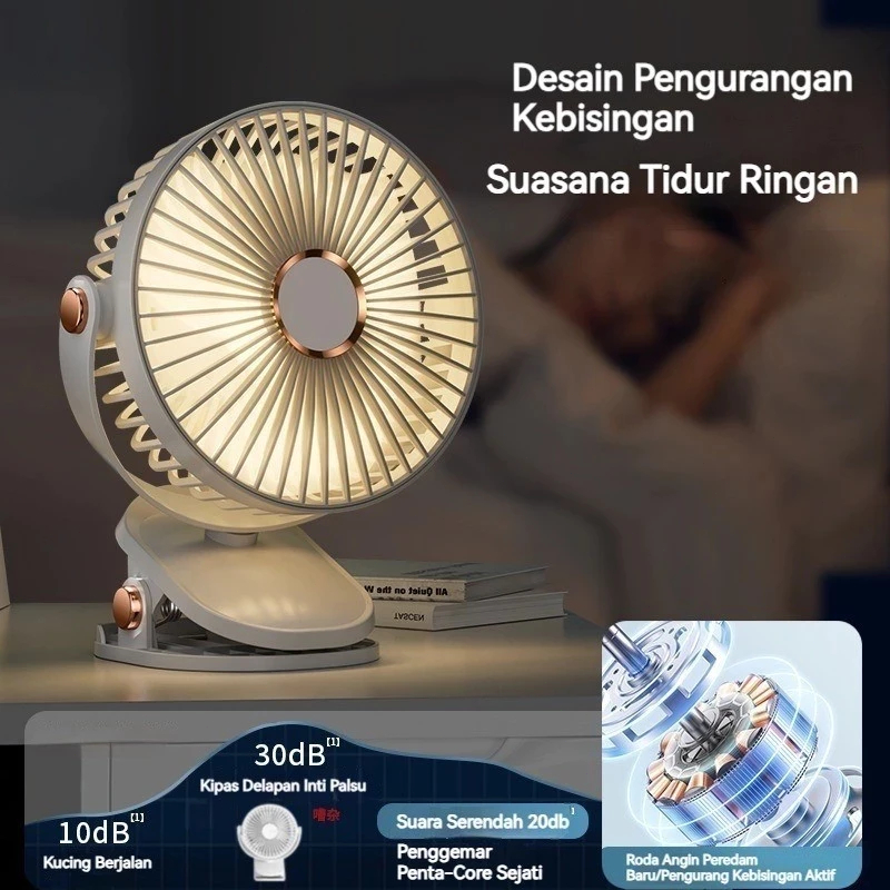 Kipas Angin USB Clip 20000mAh kipas klip Desktop Baru Kipas Angin Isi Ulang USB dengan Lampu Malam Bisu Kipas Angin Mini