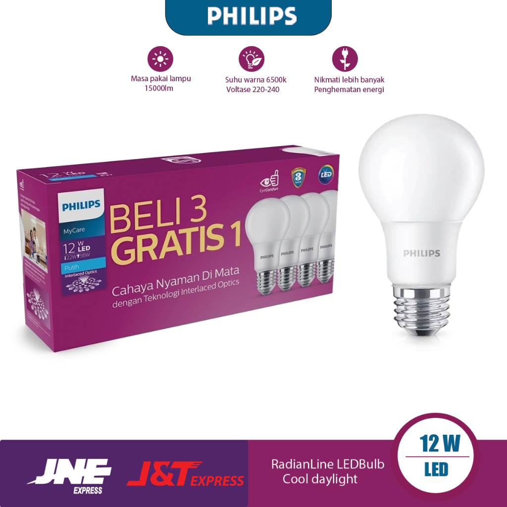 【Beli 3 gratis 1】Lampu LED Philip Paket12W 14.5 Watt Multipack Lampu led rumah Led Bulb 6500K Putih