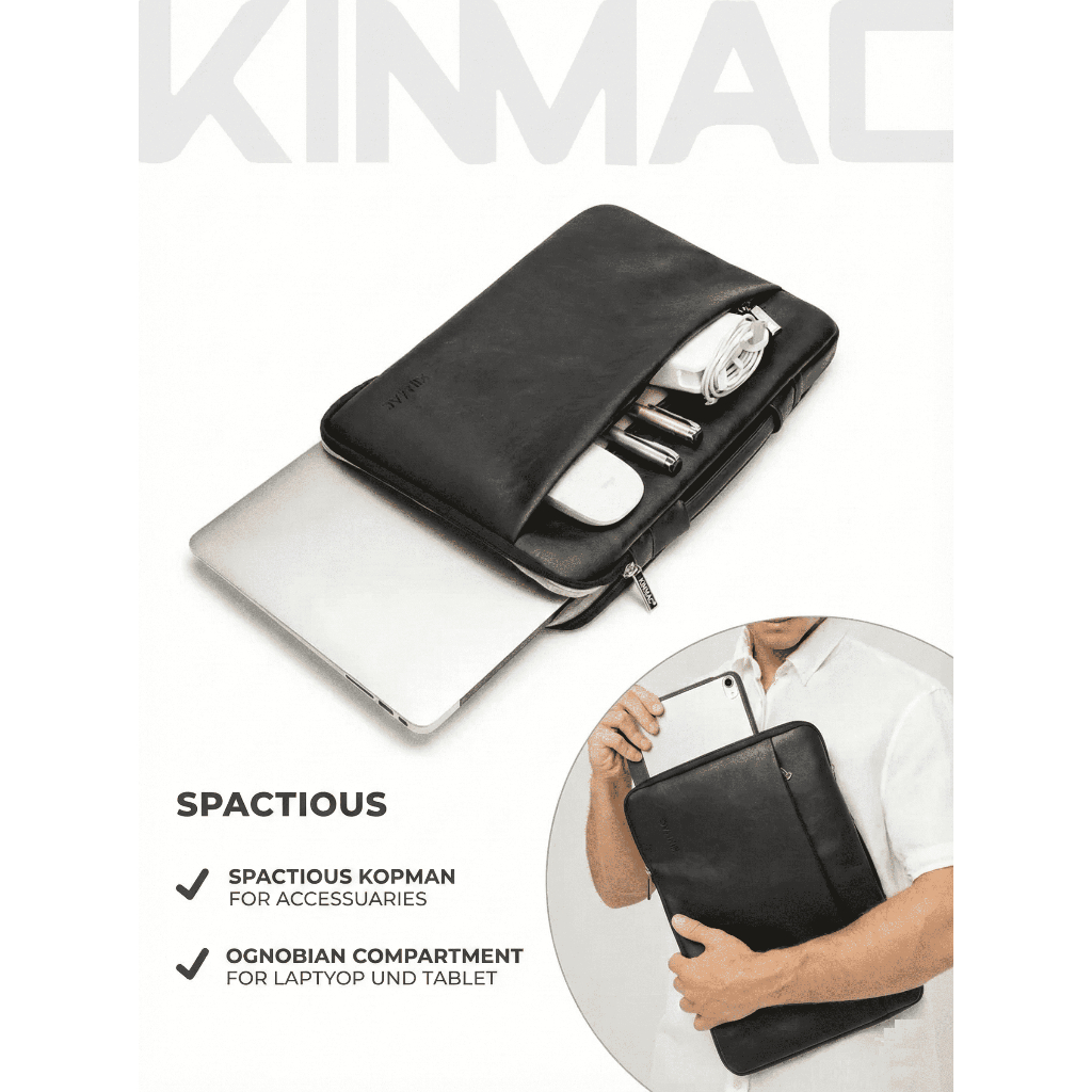 KINMAC PU Leather Handstrap Tas Laptop / Macbook Sleeve Jinjing Series Kulit Ukuran 11 - 16 Inch