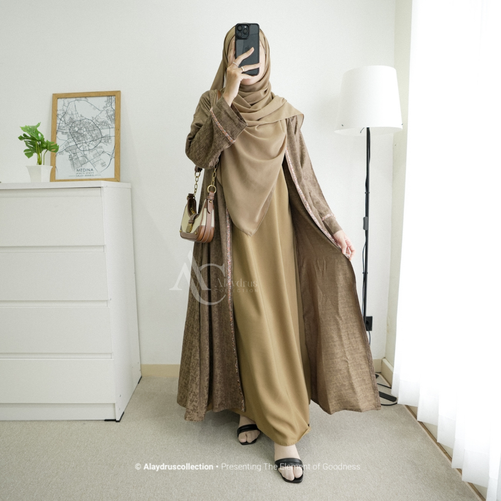 Alaydrus Collection Nadine Abaya Turkey Gamis Syari Muslimah Bahan Jaguard Premium Kombinasi Mata