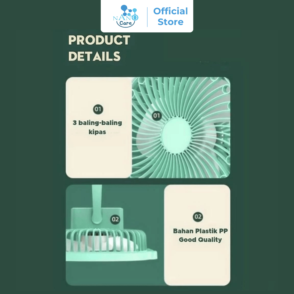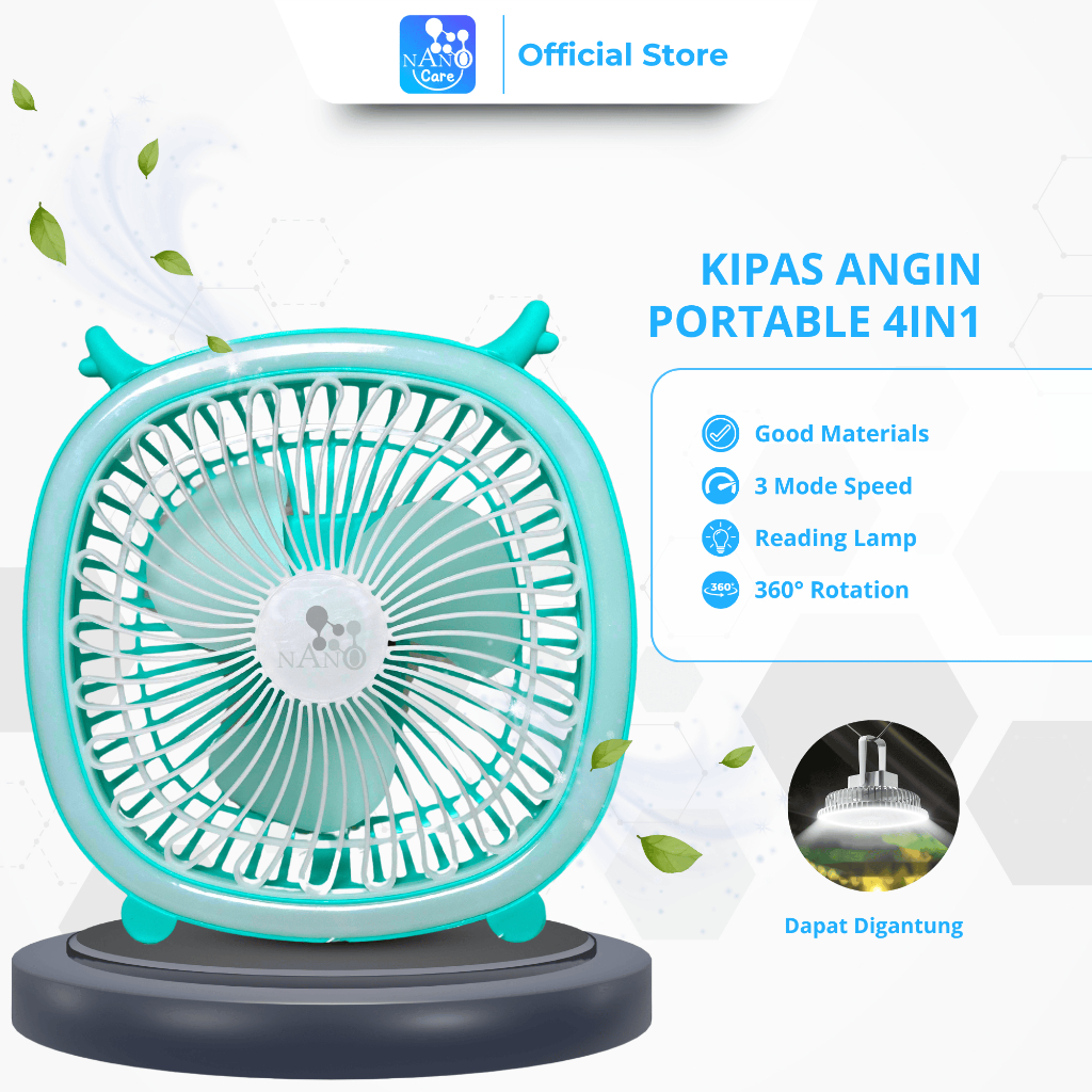 Nano Care Kipas Angin Portable 4IN1 Meja Lipat Dengan Lampu Belajar Kipas Duduk Multifungsi Gantung