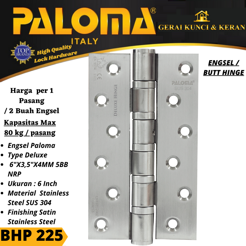 PALOMA BHP 225 BUTT HINGE ENGSEL PINTU DLX 6"X3.5"X4MM 5BB NRP NEW STAINLESS SUS 304