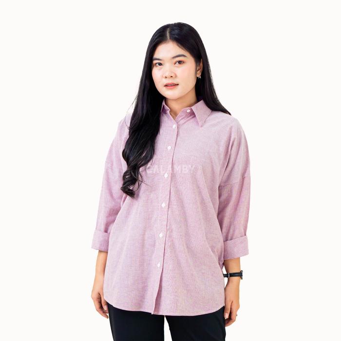 Kemeja Cala Stripes (Oversize) - Calamby - Maroon, Medium (Ld 120)
