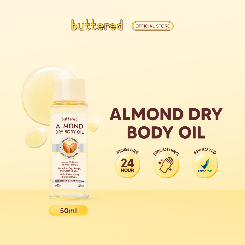 Buttered Almond Dry Body Oil 60 PERSEN Cold Pressed Sweet Almond Oil Vitamin E Dan Antioksidan Wangi Mewah Menyamarkan Stretch