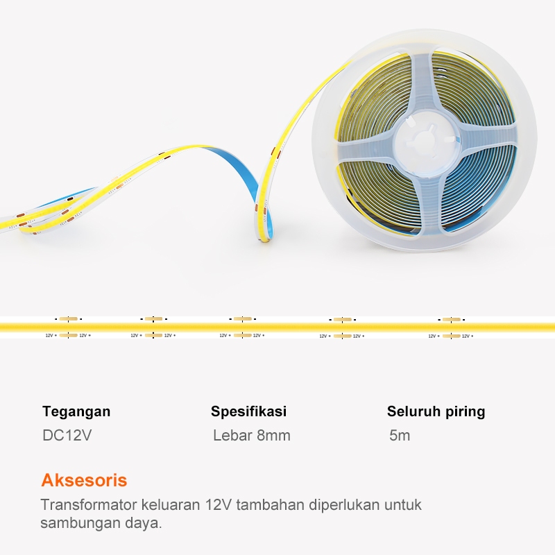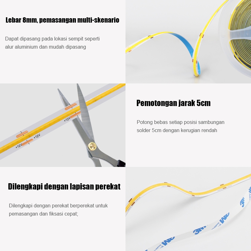 Led Strip COB DC 12volt / 5 METER 12 VOLT / WHITE / WARMWHITE / NATURAL 4000K 6000K 12W