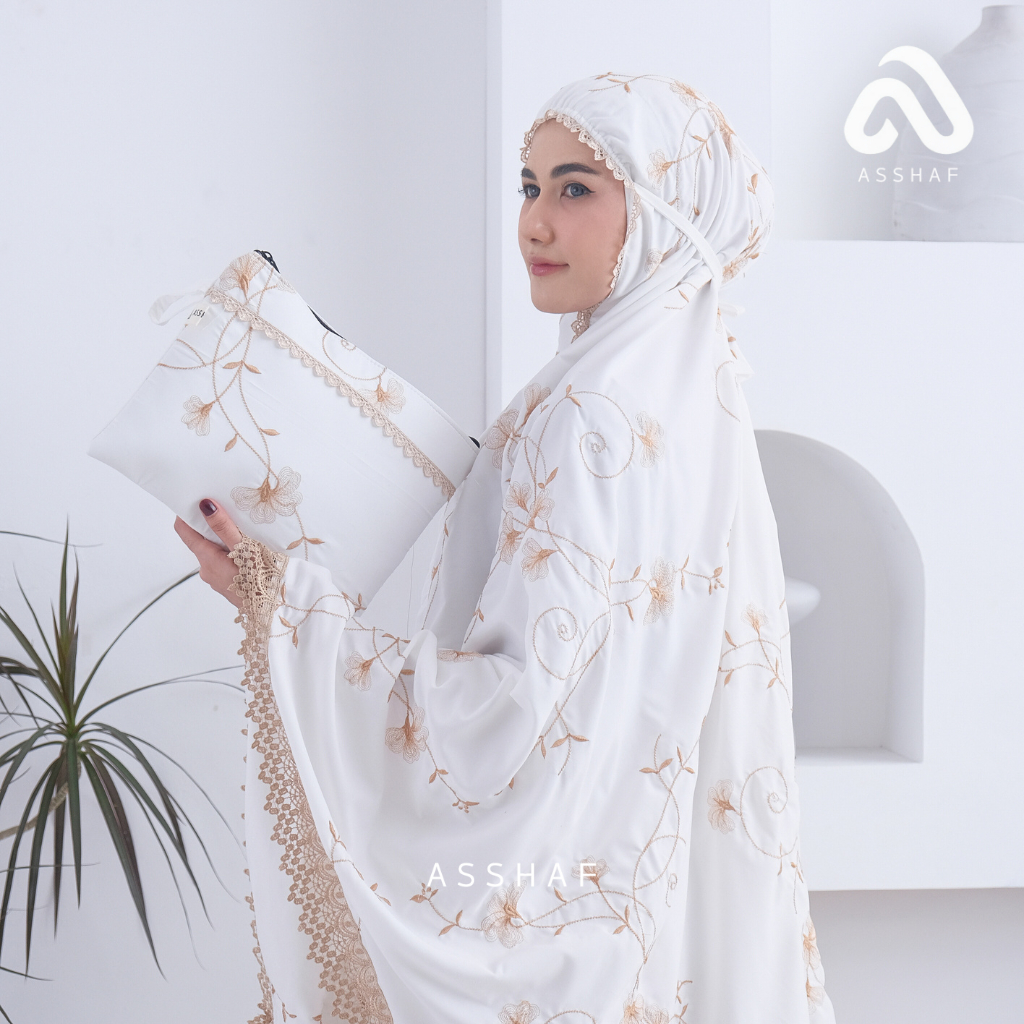 Asshaf - Mukena Dewasa Katun Bordir Bunga Amarilis Renda Cantik