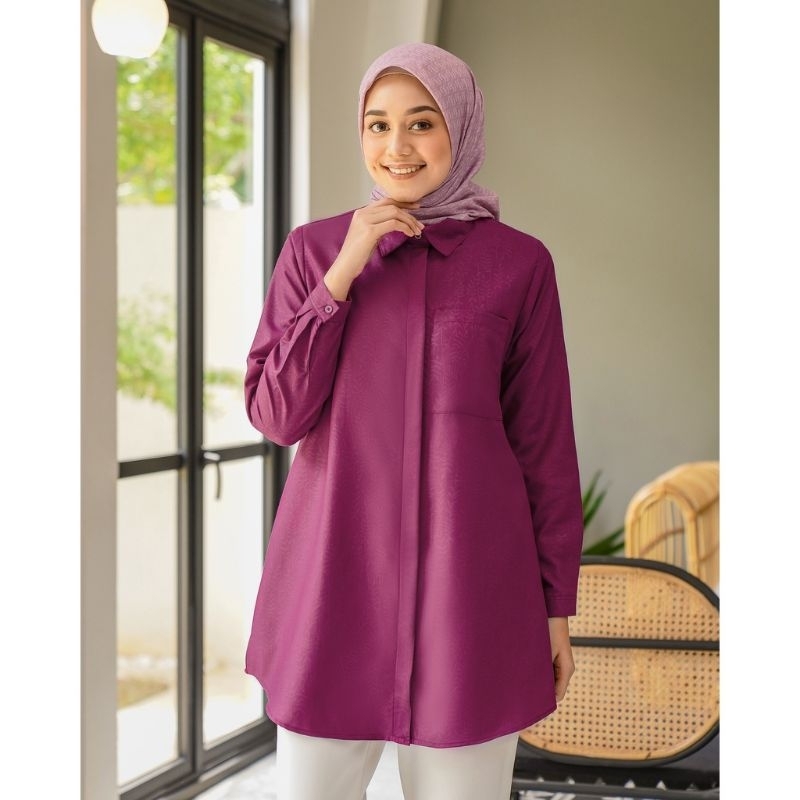 Baju Atasan Wanita Muslim Terbaru / Dareen Shirt Basic Kemeja Tunik Kerja Polos Anti Kusut