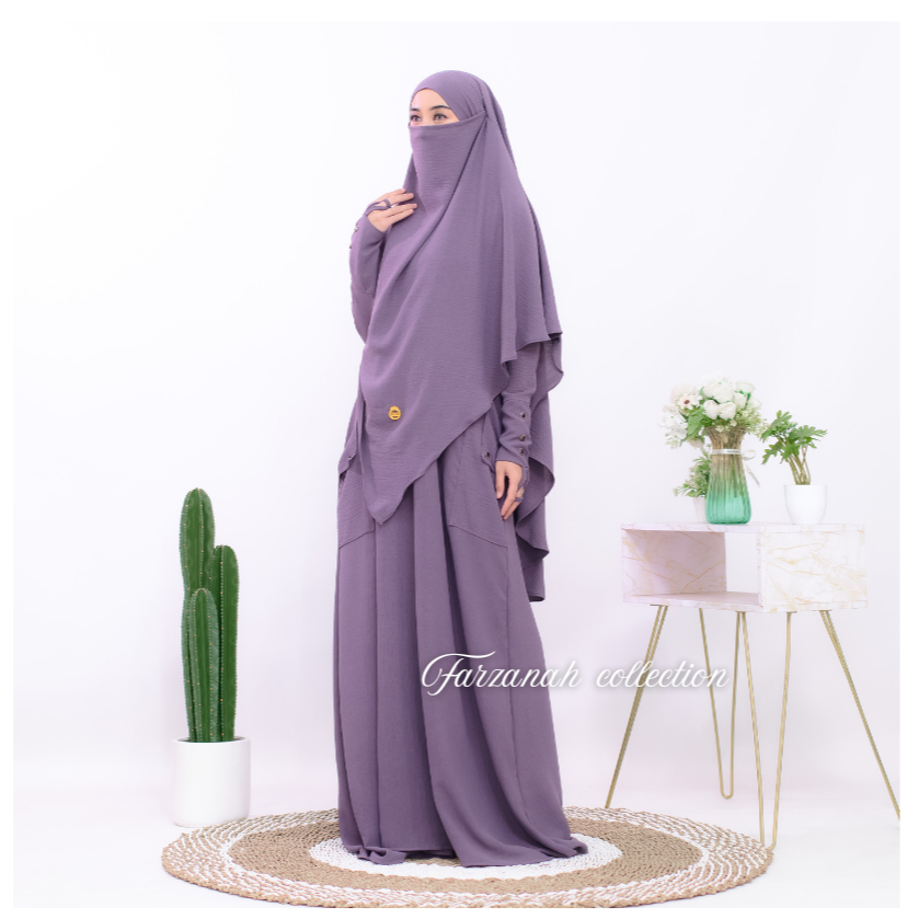 gamis abaya haviza set french khimar abaya muslimah umroh haji terbaru crinkle mewah variasi kancing