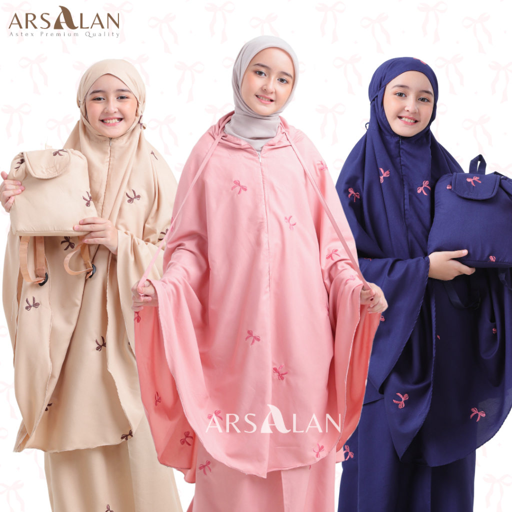 Arsalan - Mukena Anak Tas Ransel Katun Mikro Bordir 2In1 Travel 2-12 Tahun | Coquette Series