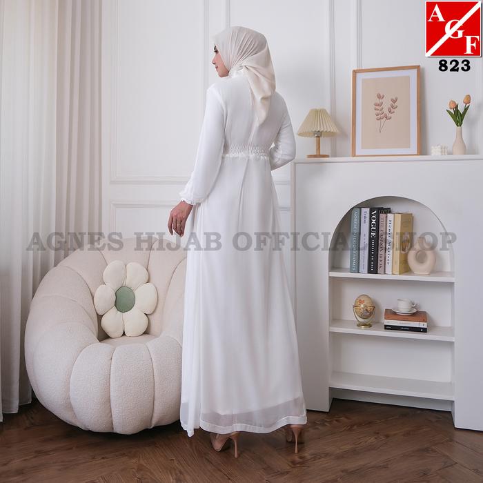 Agnes Hijab - Agacia Dress Gamis Putih Lebaran 2026 Terbaru Baju Muslim Elegan Wanita Dewasa Remaja Pengajian Manasik Ha