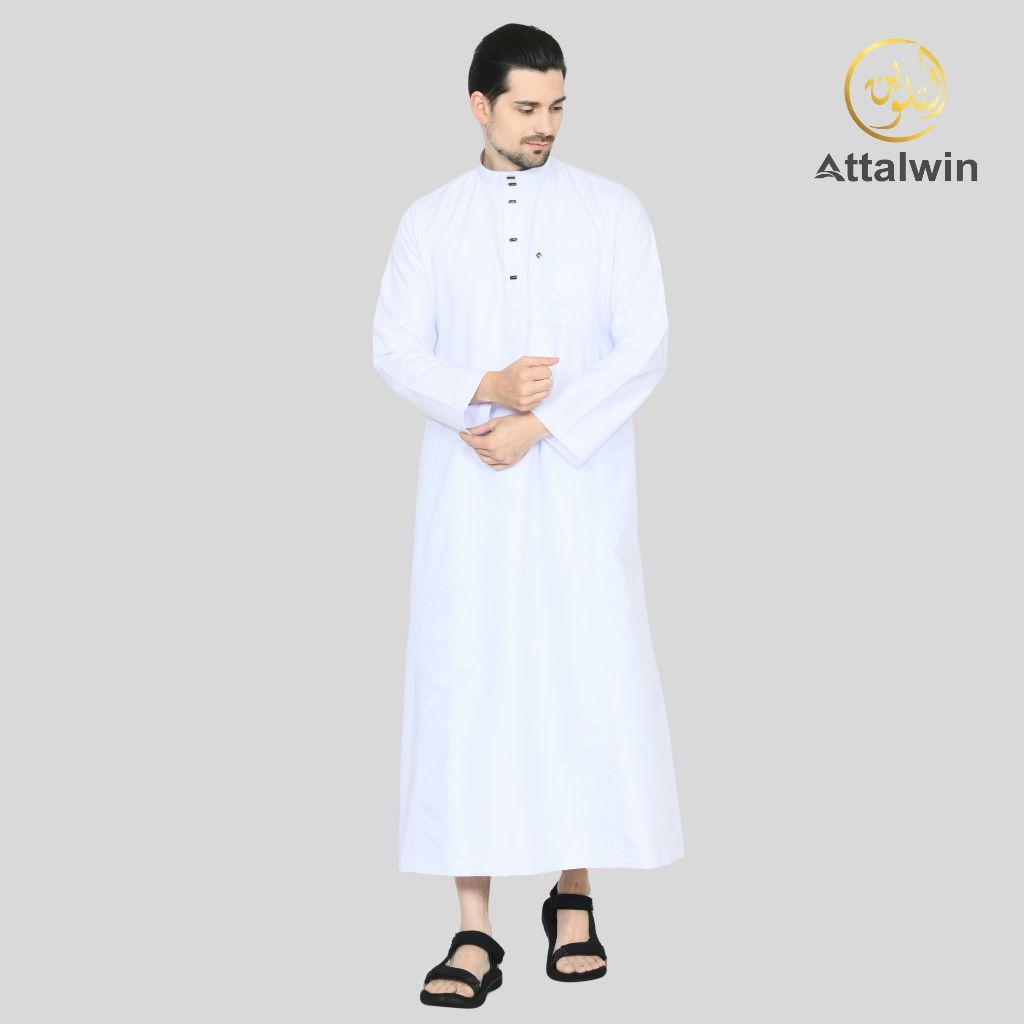 Attalwin - Gamis Jubah Pria Muslim Umroh Haji Polos Tanpa Manset Jd001