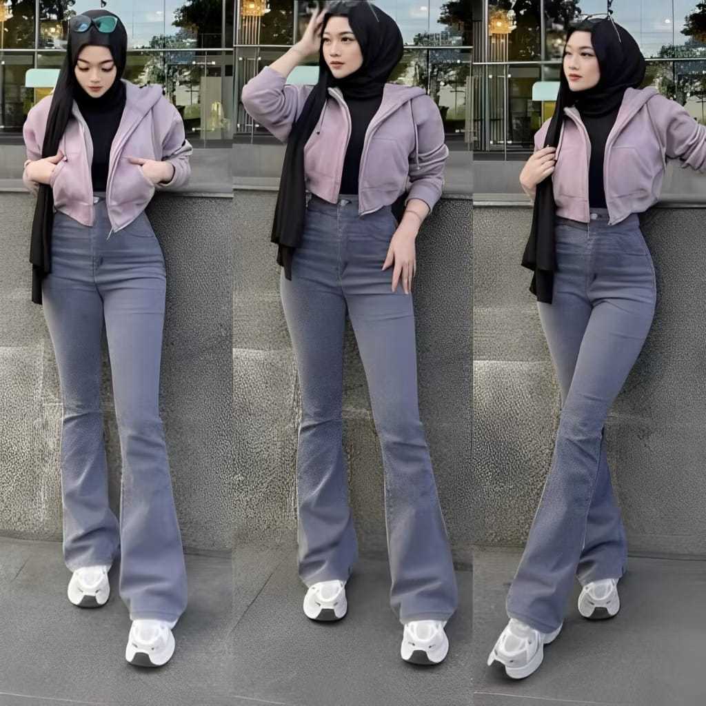 Celana Jeans Cutbray Highwaist Loose Streach Wanita - Highwaist Cutbray Jeans Wanita Kekinian