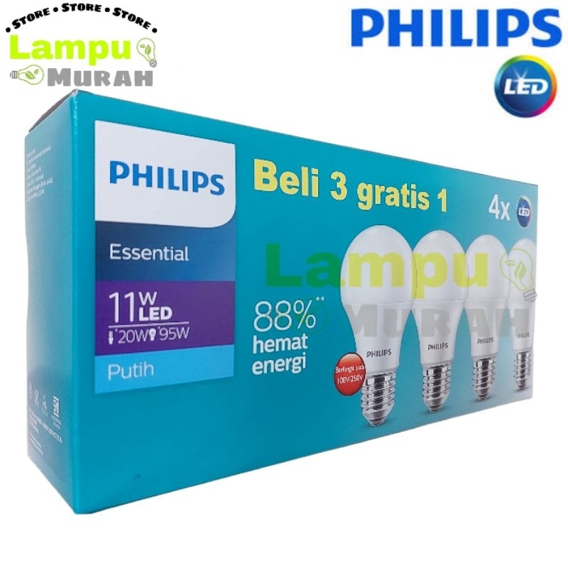 Led Pack Philips Essential 5w 7w 9w 11w - Lampu Paket 3 Gratis 1 Led Philips Essential
