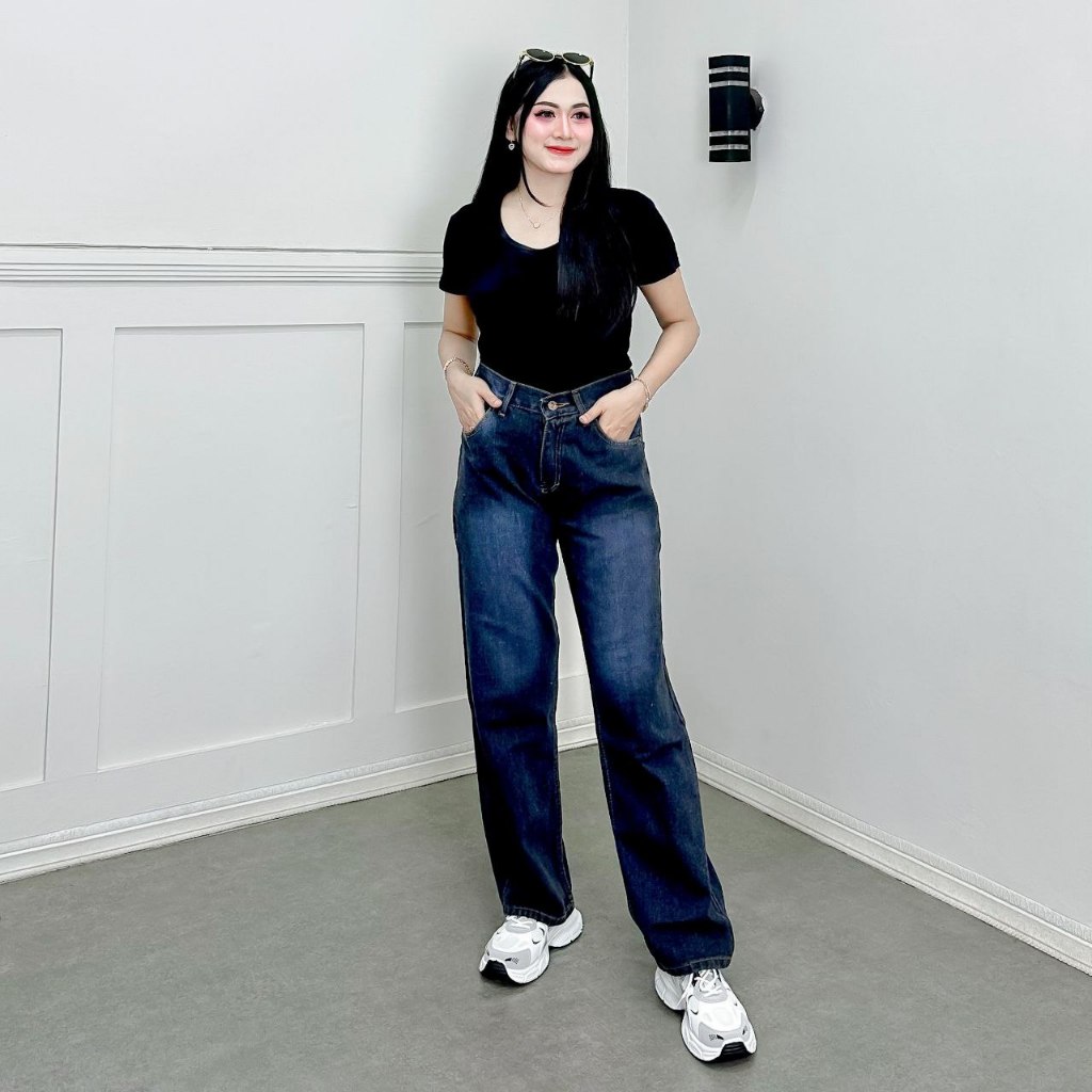 Celana Jeans Panjang Baggy Jeans Highwaist Loose Casual Celana Korean Style Celana Jeans Sobek