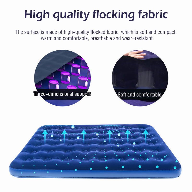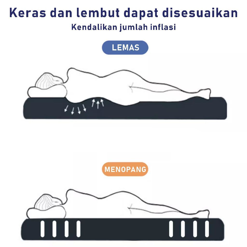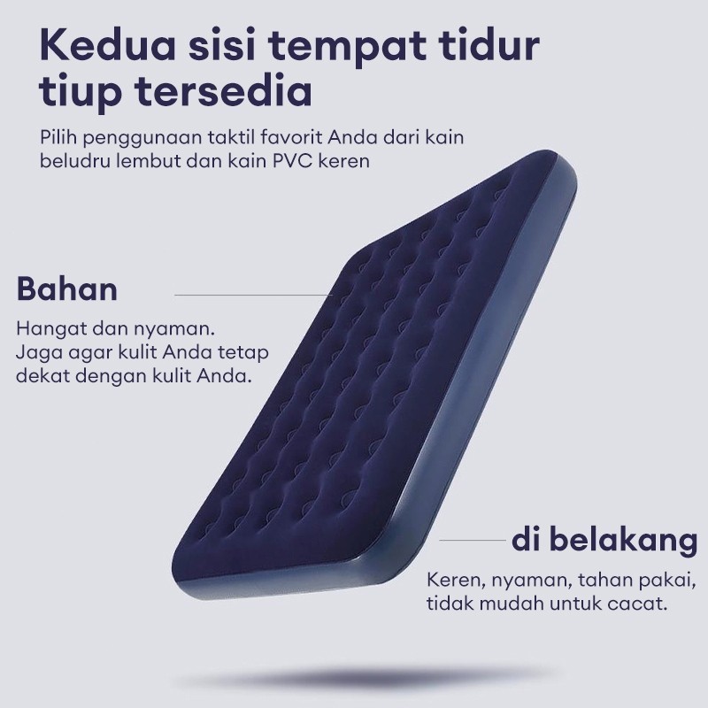 Kasur Angin Double Air Bed 200x180cm Tebal Nyaman, Kasur Tiup Portable Anti Bocor + Pompa - Biru