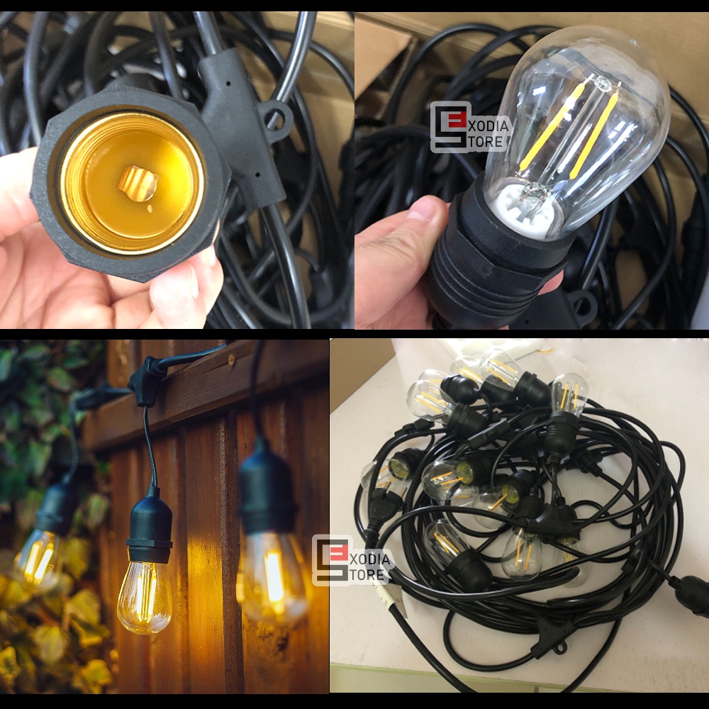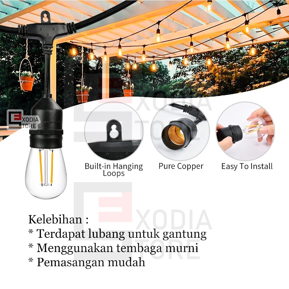 Lampu Gantung Kabel Filamen SNI Waterproof Kabel 10 Meter 10 Fitting Lampu Hias Filament String Lights E27 Classic Outdoor Dekorasi Caffe