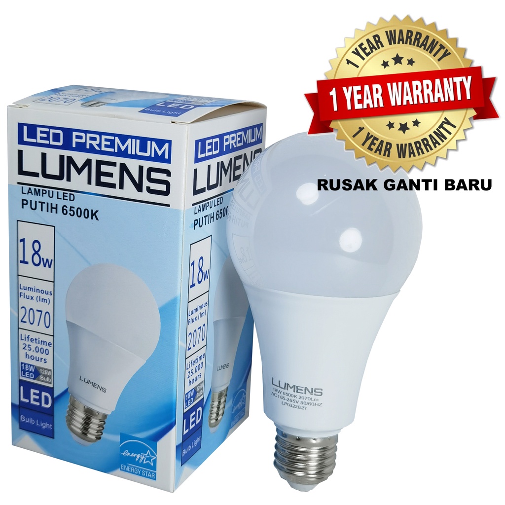 Lampu LED LUMENS 18w 18 watt 18watt putih TERANG MURAH, 110++ Lm/W (umumnya 90 Lm/W)