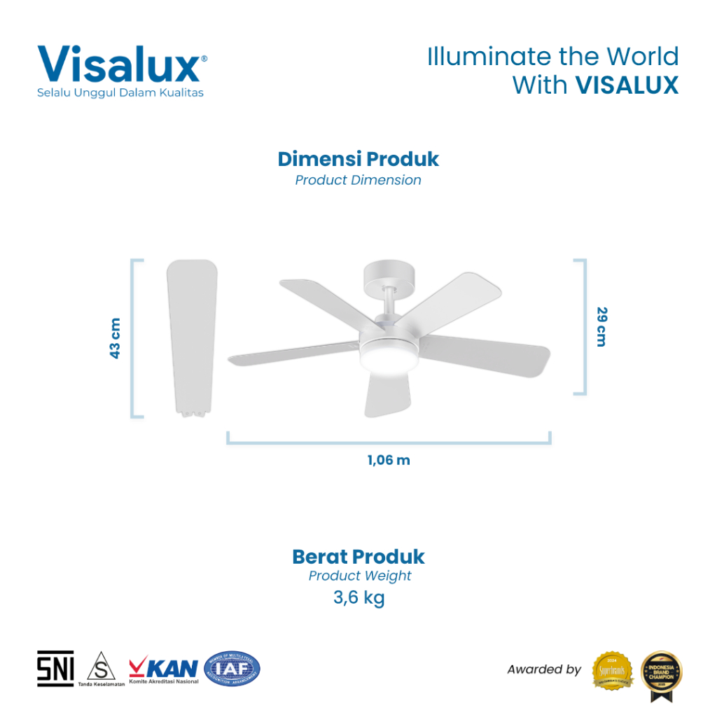 Visalux Veloce Ceiling Fan 55W 42 Inch with LED Light 18W 3000K 4000K 6500K - Kipas Angin Gantung Plafon Langit Hitam Putih dengan Lampu (VELOCE-FD40)