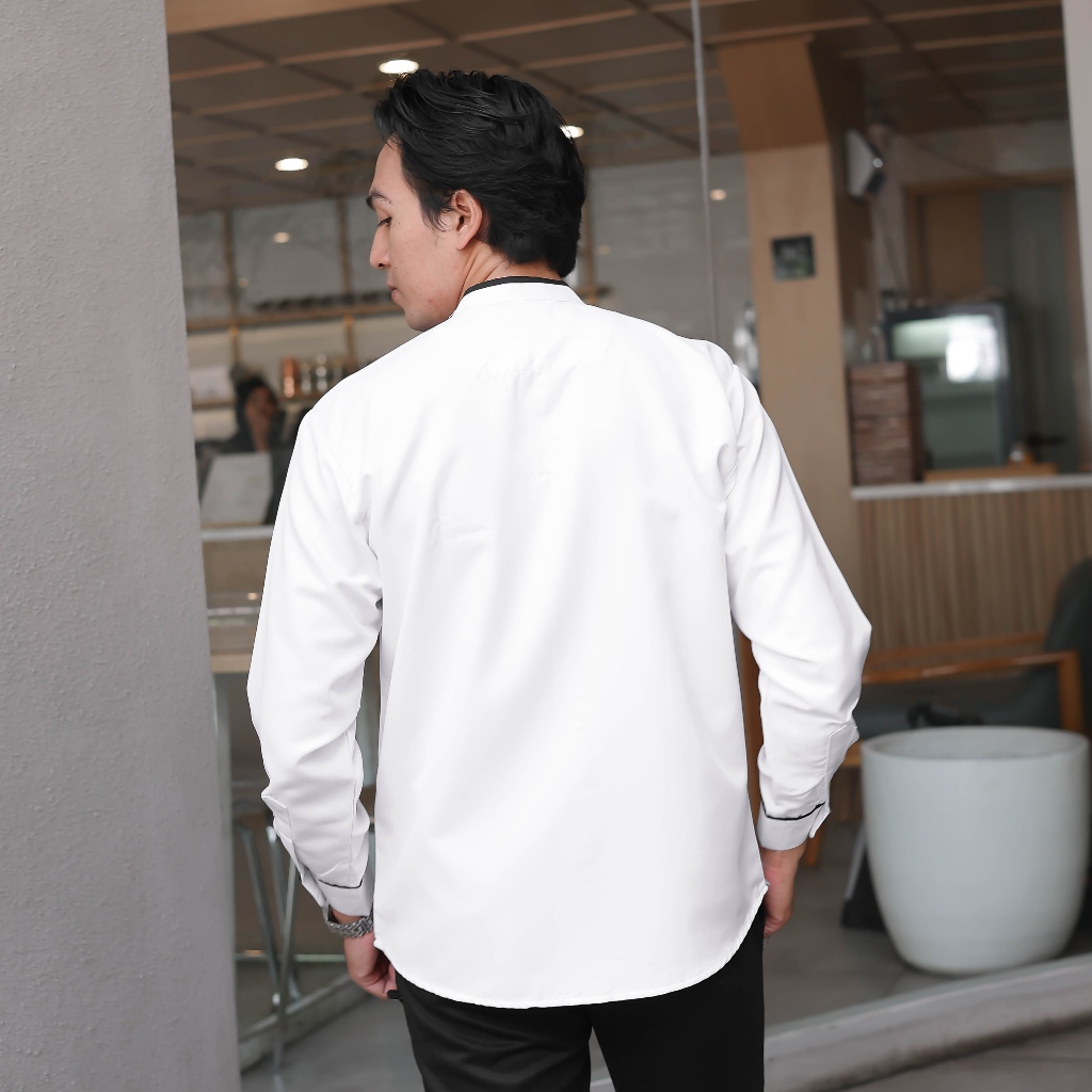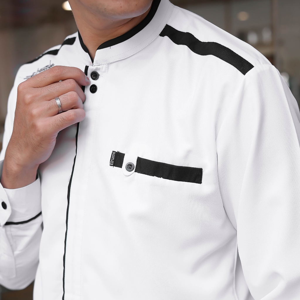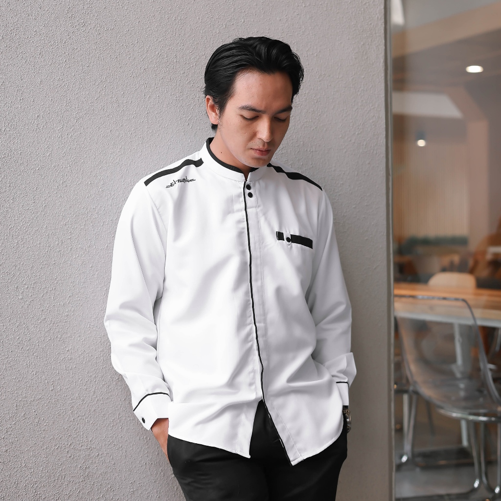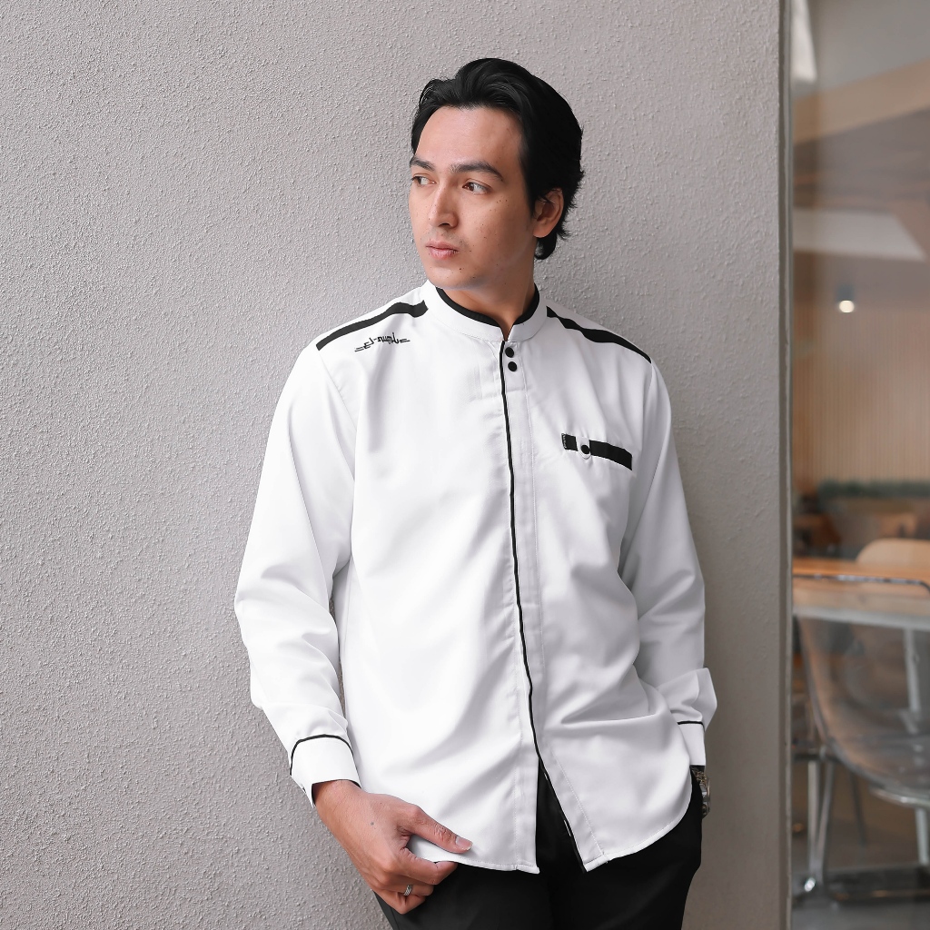 Baju Koko Pria Elrumi Lengan Panjang Motif Yisunsin Warna Putih