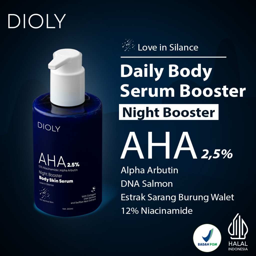 Dioly Night Body Lotion Serum Booster Aha 2,5 PERSEN | 12 PERSEN Niacinamide | Dna Salmon | Ekstrak Sarang Burung Walet | Alpha Arbu