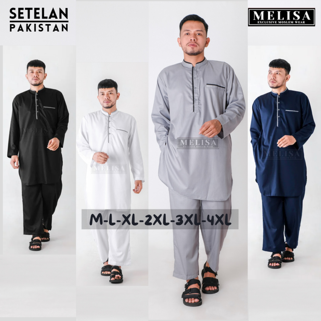 Baju Koko Pria Setelan Kurta Pakistan Dewasa Lengan Panjang Bahan Katun Toyobo Warna Abu Putih Navy Dan Hitam Model Terb