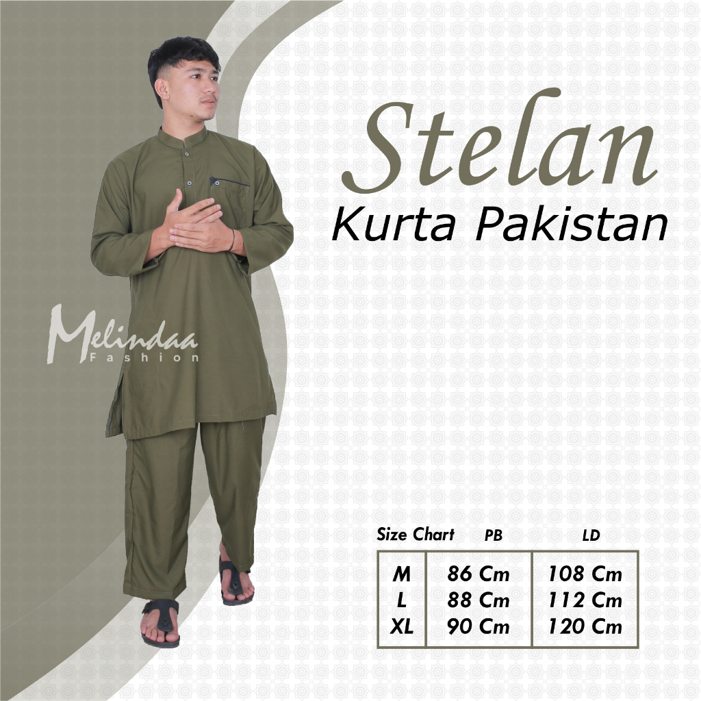 Baju Koko Stelan Kurta Pakistan Pria Dewasa & Remaja - Oneset Baju Koko Muslim Lengan Panjang Kancing Strip Dan Saku
