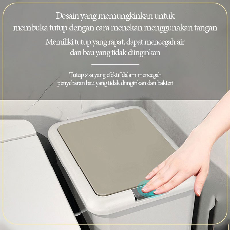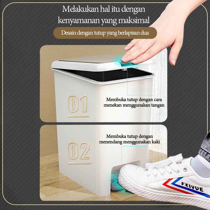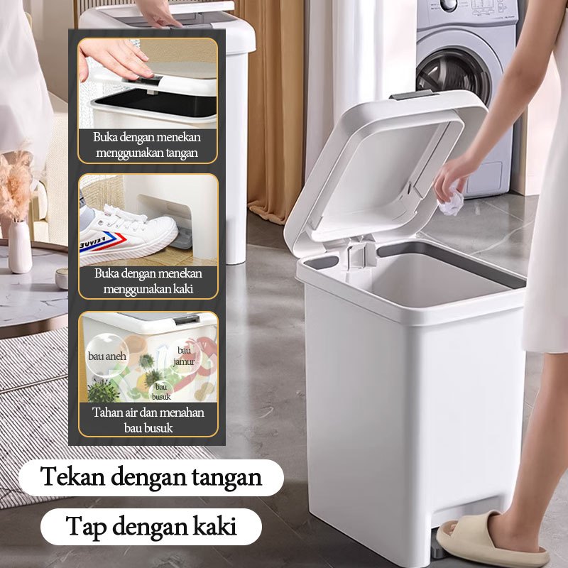 Tempat sampah yang dioperasikan dengan kaki Tong Sampah Minimalis Liter Tutup Rapat Bahan PP Kuat Cocok untuk Dapur, Kamar Mandi & Kantor
