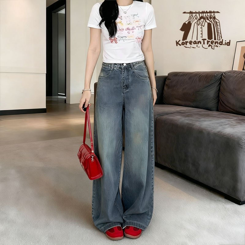 Koreantrend Celana Jeans Terbaru Kulot Korean Style Baggy Jeans Wanita