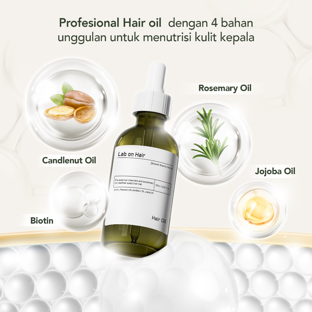 Lab On Hair Rosemary Hair Oil - Minyak Penumbuh Rambut Rosemary Oil Hair Care Hair Serum Hair Ampoule Menutrisi Kulit Ke