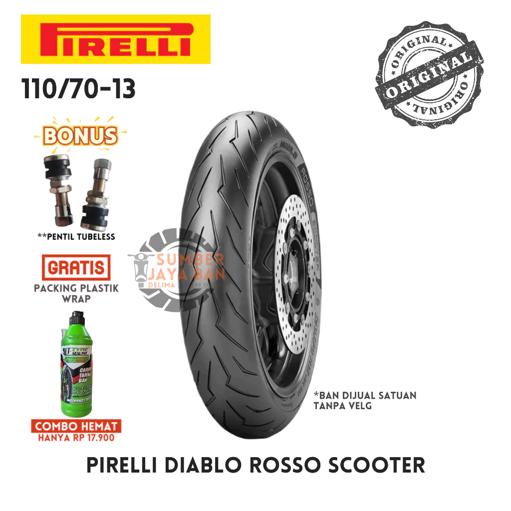 Pirelli Diablo Rosso Scooter 110/70-13 Ring 13 110/70 Tubeless Tubles Ban Motor Nmax