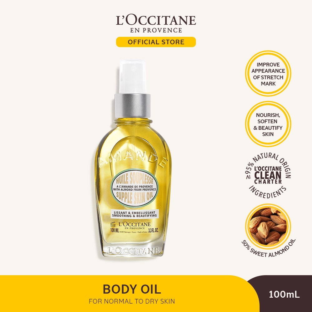 L'Occitane Almond Supple Skin Oil 100Ml - Body Oil Minyak Tubuh Melembabkan Mengurangi Strecth Marks