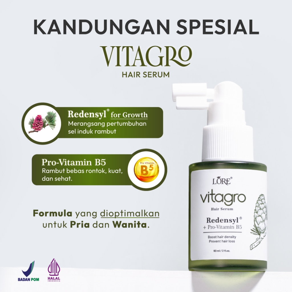 Lore Vitagro Hair Serum - Hair Growth Serum Penumbuh Rambut Redensyl Pro Vitamin B5 Atasi Kebotakan