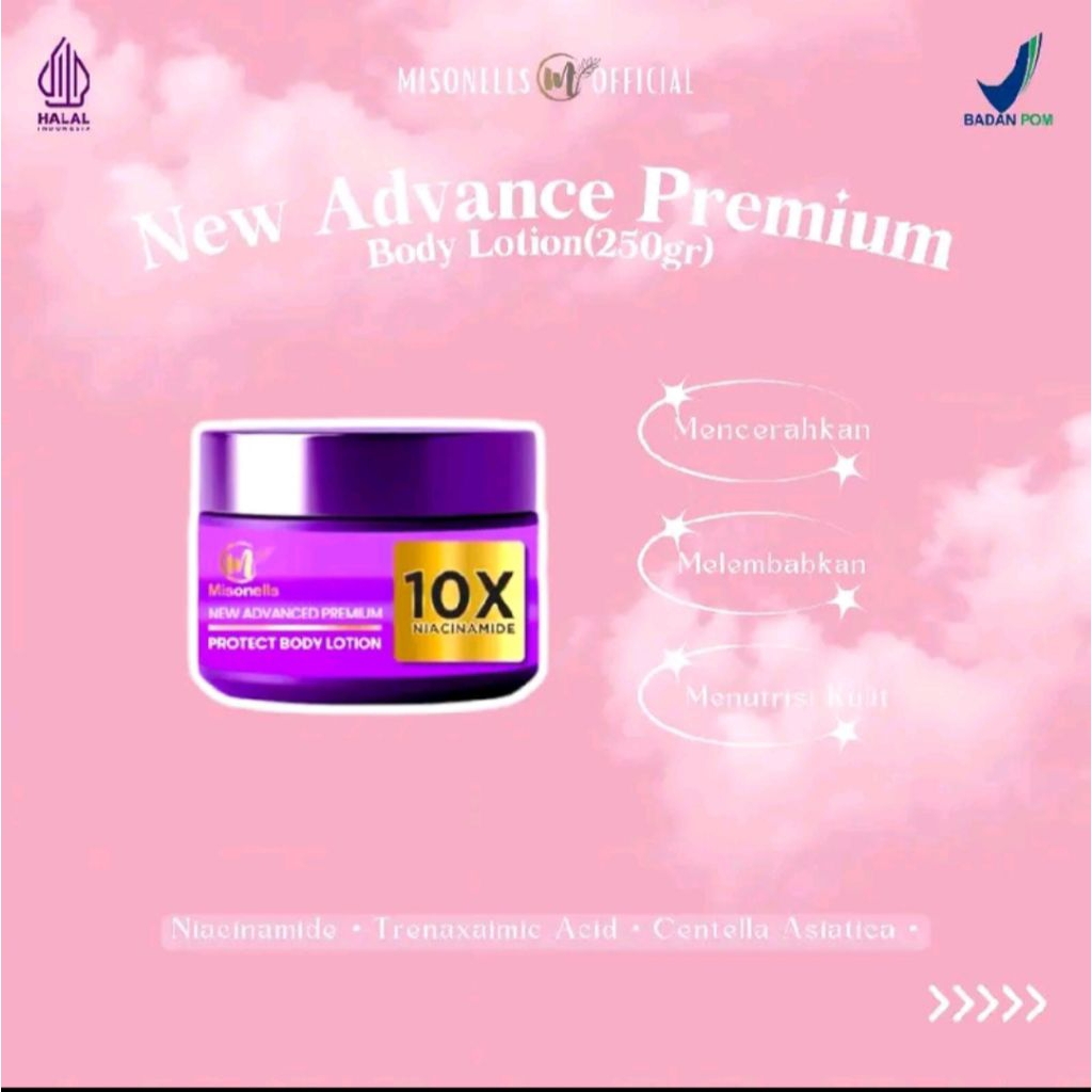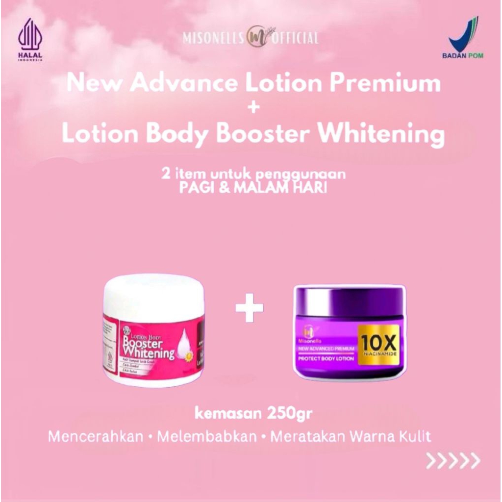 Misonells New Advance Lotion Premium Body Booster Whitening 250Gr Ekstra Mencerahkan Kulit