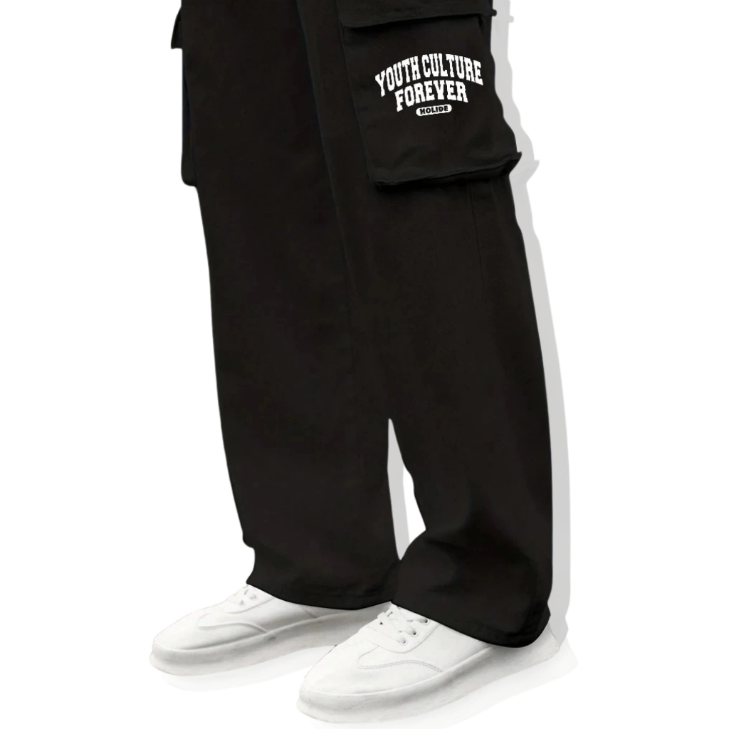 Celana Panjang Cargo Bahan Fleece Logo A Cargo Fleece Long Pants Celana Panjang Flecee Pria Wanita Warna Hitam Model Ske