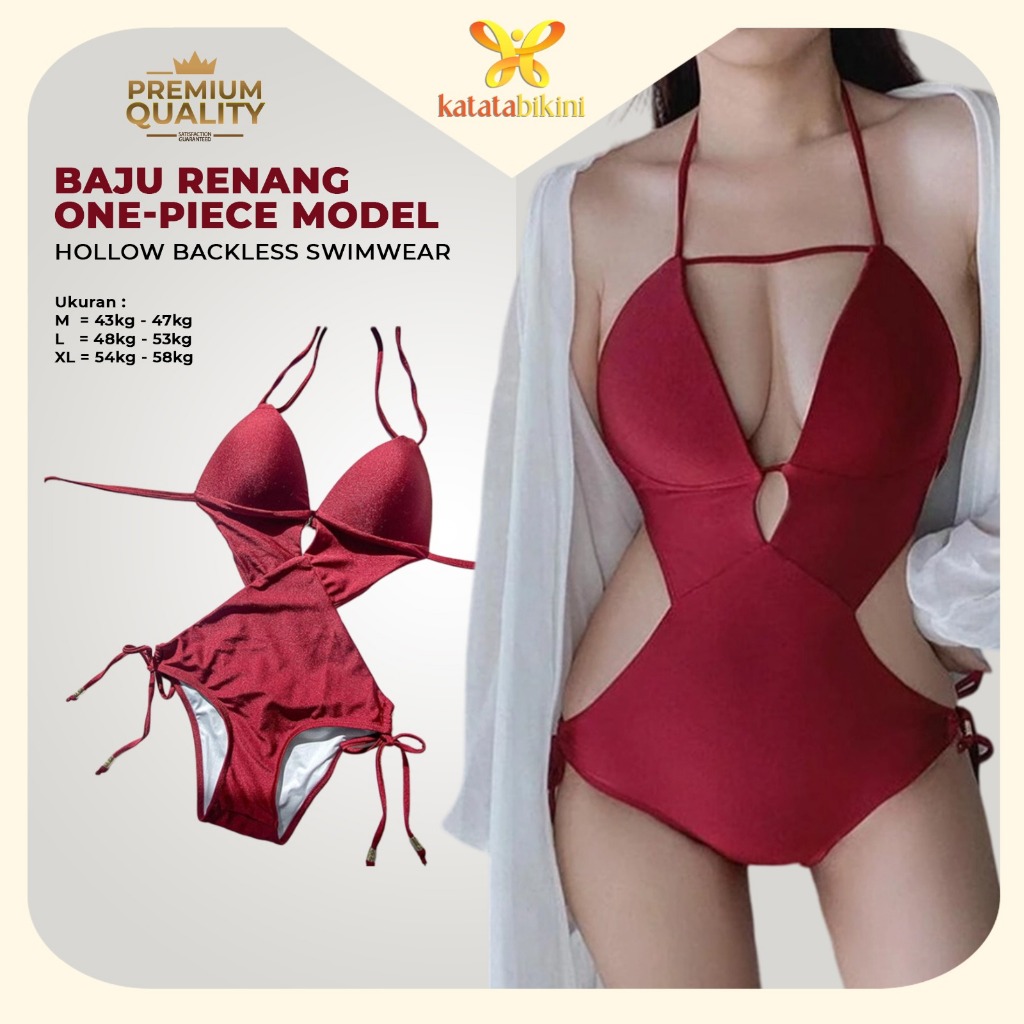 Katata Bikini Swimsuit Bahan Premium Monokini Baju Renang One-Piece Model Hollow Backless Swimwear Bikini Pakaian Renang