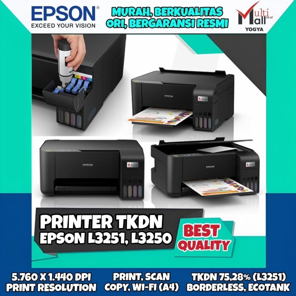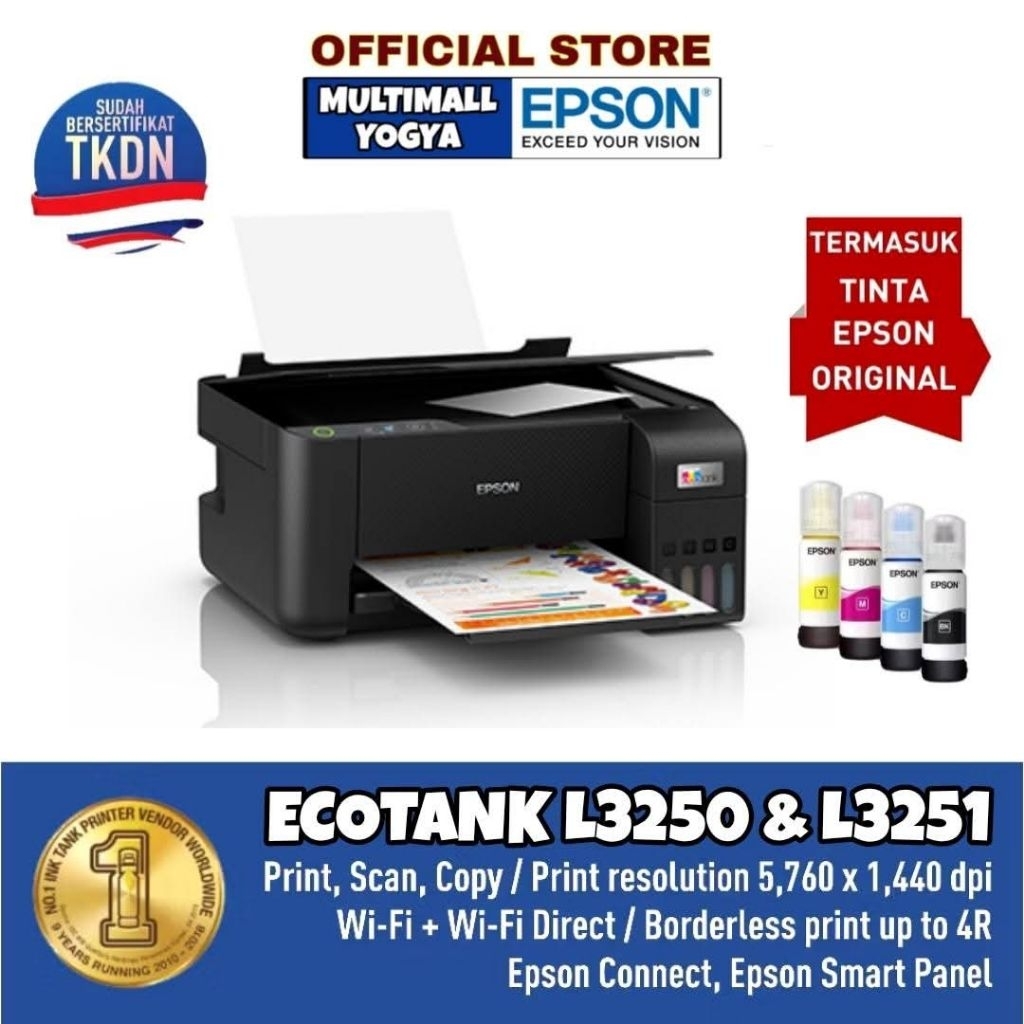 Epson Printer L3250, L3251 TKDN Multifungsi Print Scan Copy WiFi All-In-One Wireless A4 EcoTank