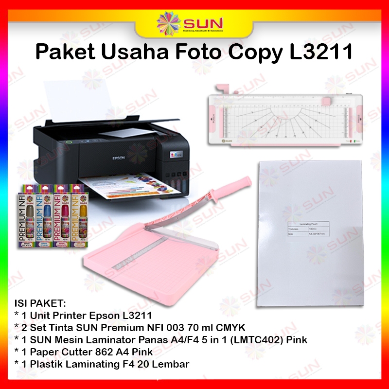 Paket Usaha Printer Fotokopi Epson L3210 / L3211 / L3250 / L3251 Tinta SUN - Laminating LMTC