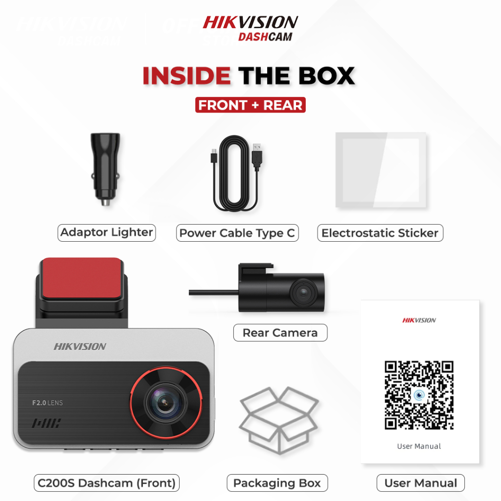 HIKVISION C200S Dash Cam 1080P WiFi Front+Rear Dual Channel Dashcam Mobil